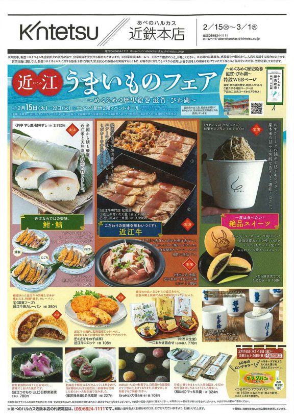 2月15日(火)より、大阪 あべのハルカス近鉄本店にて開催中の「近江うまいものフェアにて、松喜屋の商品を販売しております!