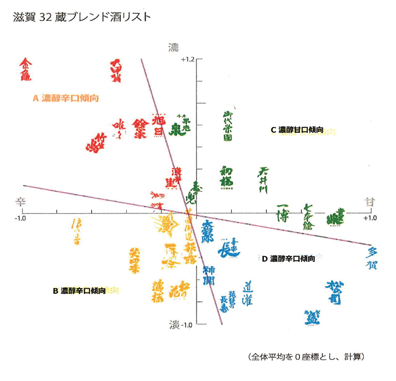 滋賀県酒造組合加盟全32蔵の純米、純米吟醸、特別純米酒を集め、滋賀県工業技術総合センターの分析協力のもと、4つの味わいグループに分けて、それに基づいて有識者らをまじえたブレンド検討会を経てブレンド比率を決定。蔵元の多様性を生かしつつ、五味のバランスを重視した仕上がりを追求しました。今年は冷蔵貯蔵された蔵元自慢の純米酒、特別純米酒、純米吟醸酒に変更することで、よりフレッシュでバランスのよい清酒が揃いました。