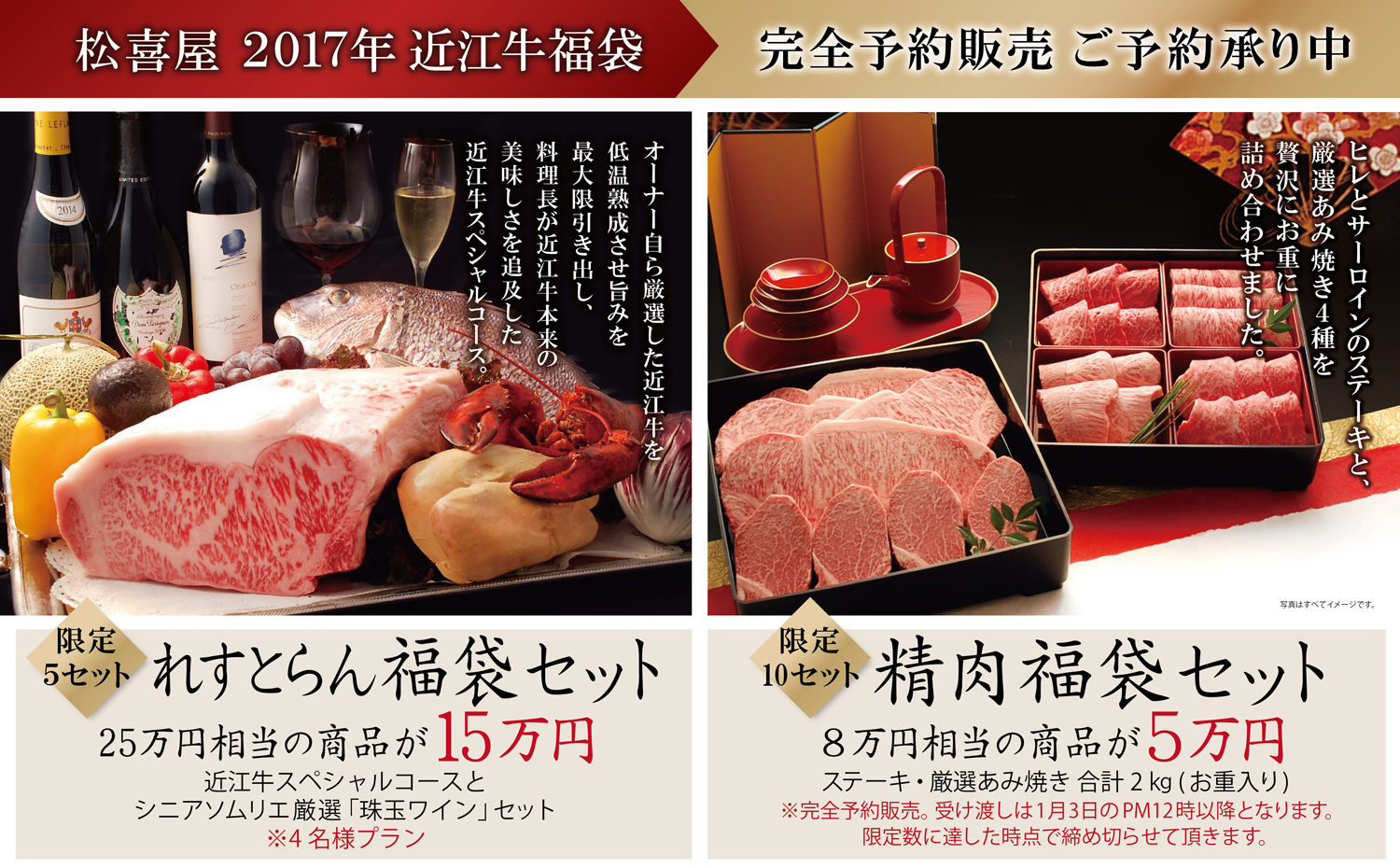 今年は精肉販売店、レストランともに、近江牛福袋をご用意いたしました。