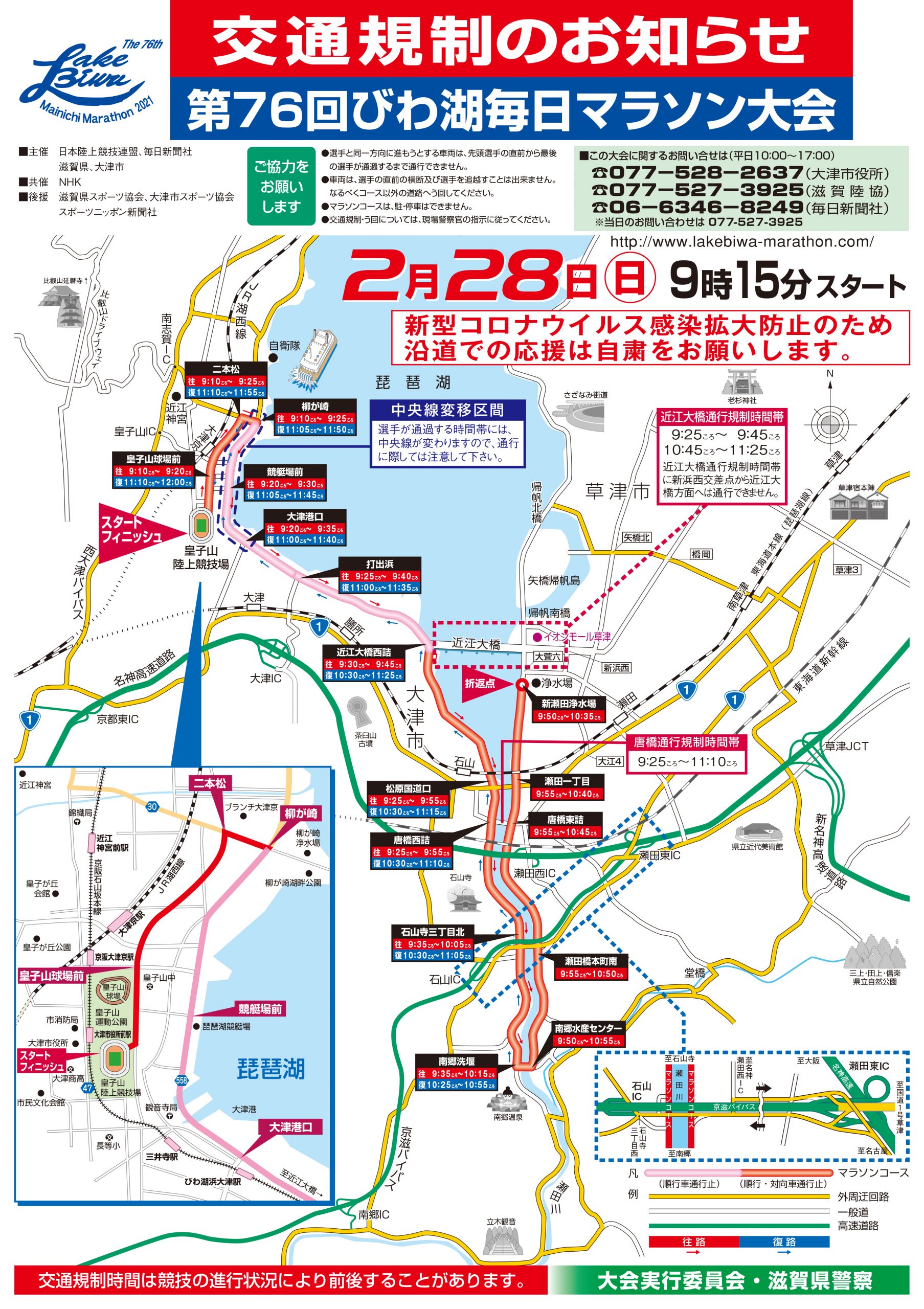 2/28(日)は第76回びわ湖毎日マラソン大会開催に伴い、