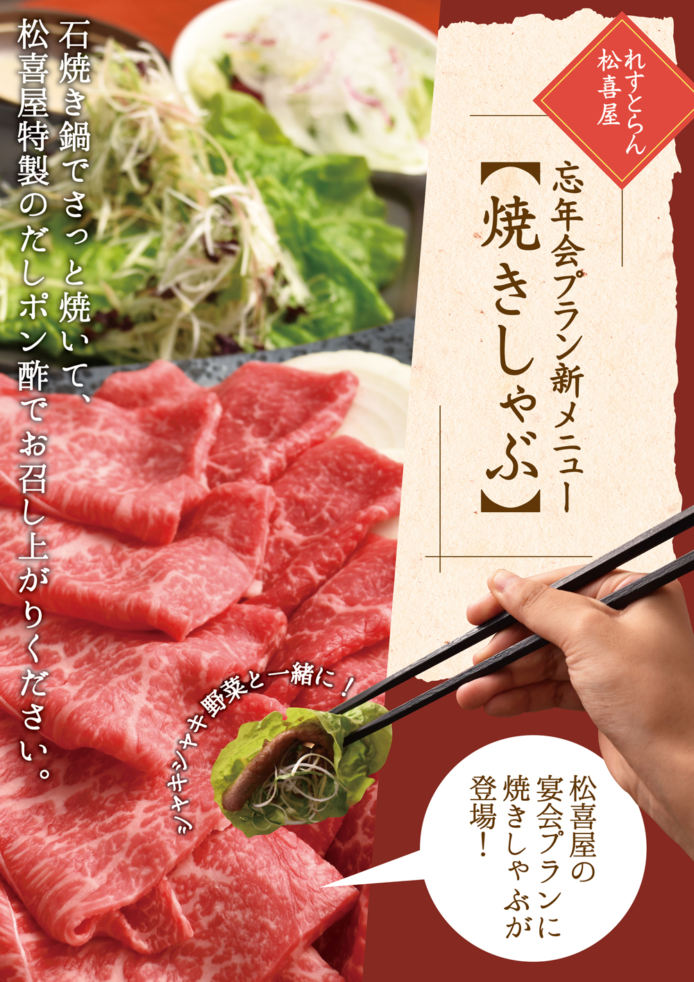 松喜屋の忘年会プランに「焼きしゃぶ」が登場!