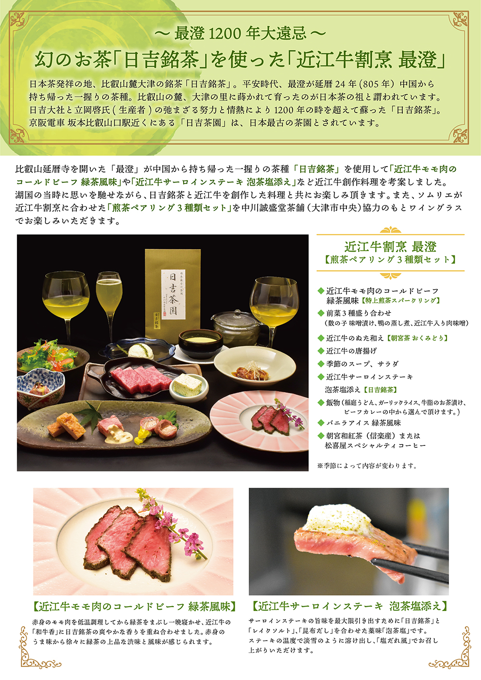 幻のお茶「日吉銘茶」を使った「近江牛割烹 最澄」