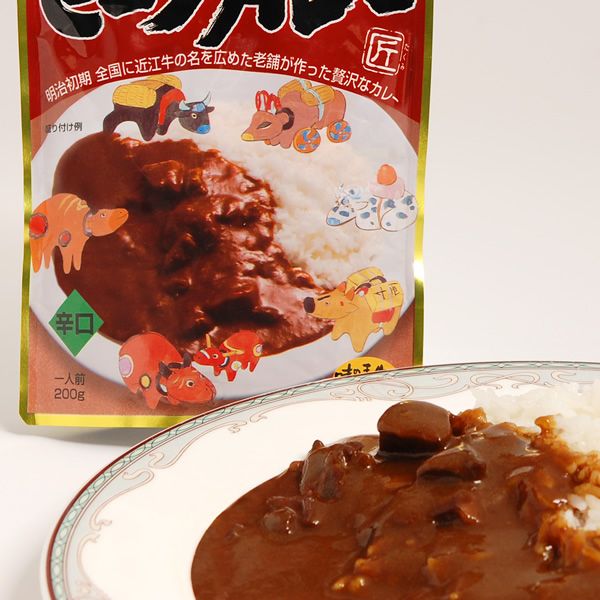 牛肉(近江牛)、ヘット、小麦粉、リンゴピューレ、砂糖、チャツネ、トマトピューレ、カレー粉、食塩、ビーフエキス、しょうゆ、デミグラスソース、にんにく、バター、赤ワイン、ビーフシーズニングオイル、香辛料、ビーフコンソメ、酵母エキス、調味料(アミノ酸等)、着色料(カラメル)、酸味料、香料