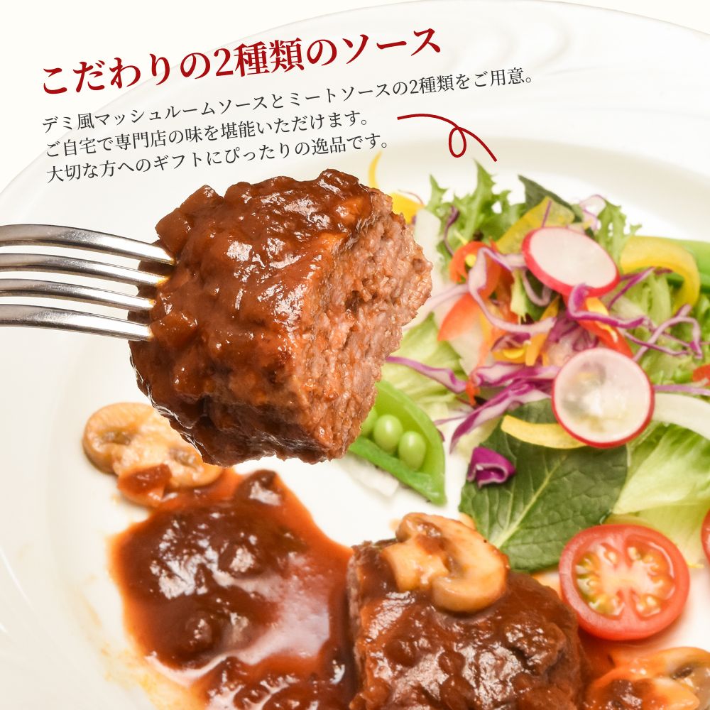 コク深いデミグラス香るマッシュルームソースと、夢の肉×肉を実現したミートソースをかけたハンバーグステーキのセットを母の日限定で販売。ハンバーグもソースも全てシェフの手作り。近江牛の甘みと肉汁にマッシュルームの香りが加わり豊かな味わいのマッシュルームソースハンバーグステーキ。赤ワインで煮込んだ香味野菜で1週間かけて作られるこだわりのミートソースをたっぷりとかけた、コクと深みのあるハンバーグステーキをお楽しみください。近江牛と国産豚肉の合挽ミンチを使用。一口噛み締める毎にあふれ出る素材のおいしさを、そのまま感じてもらえます。